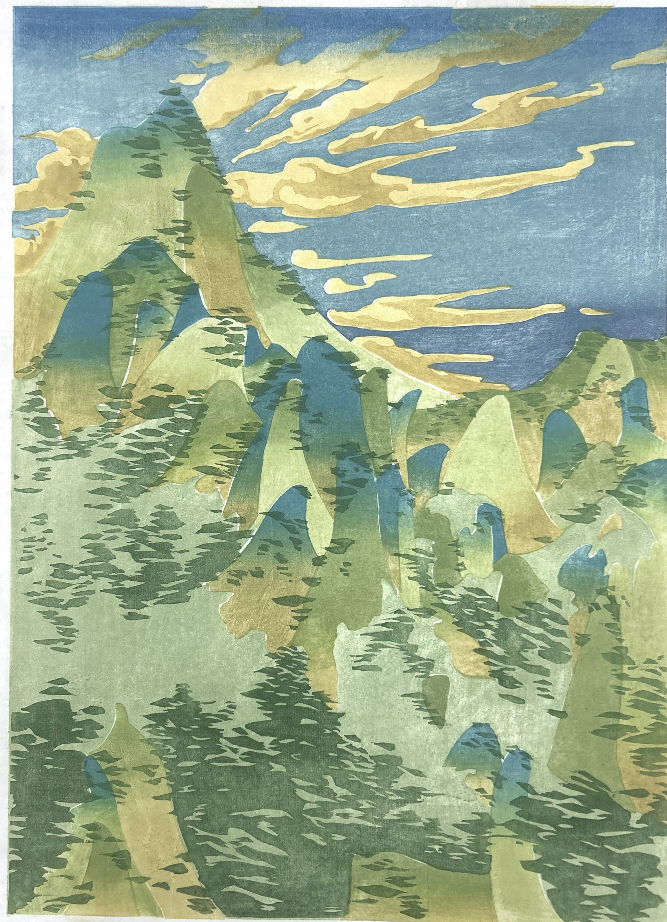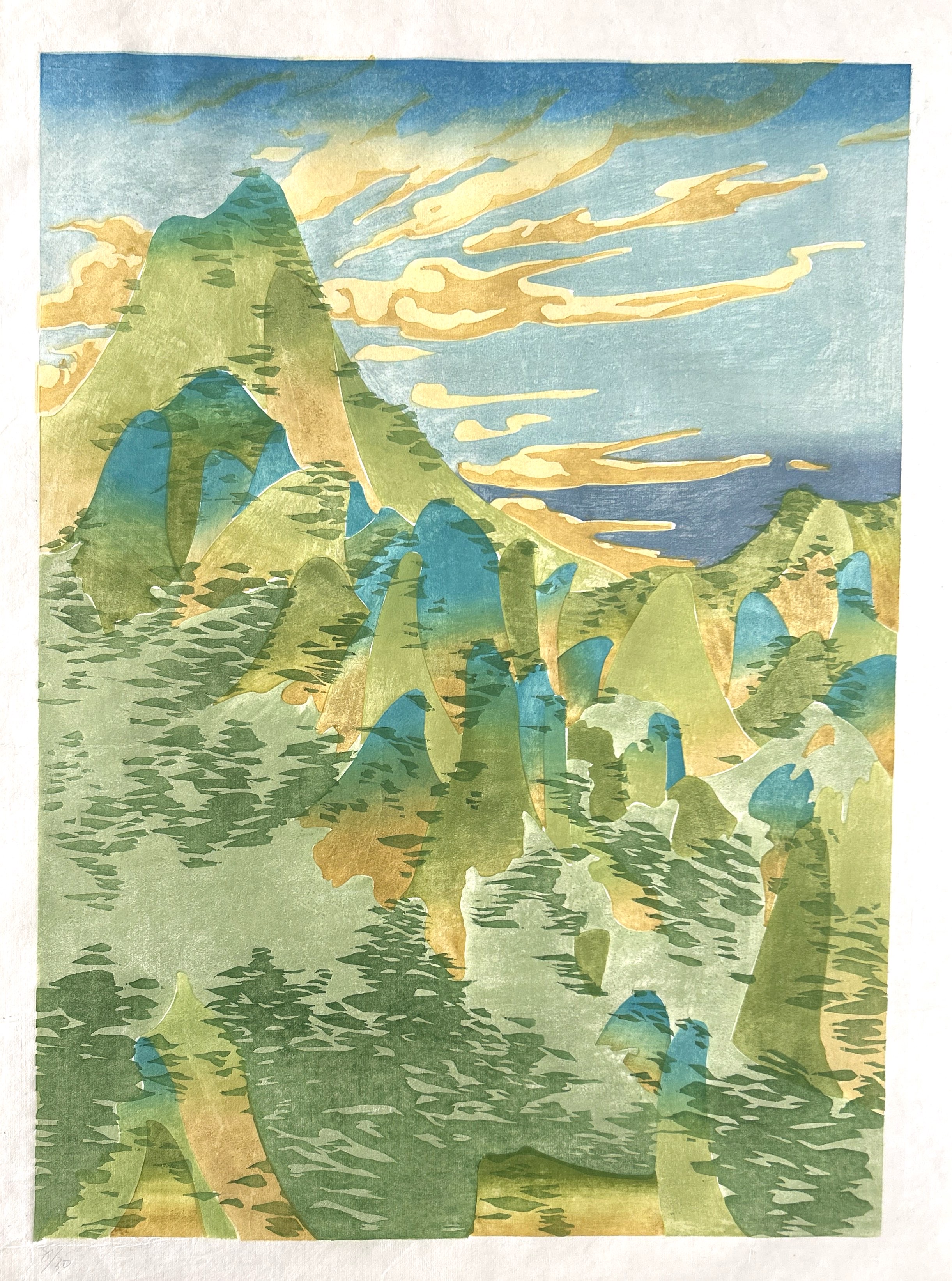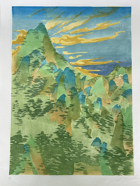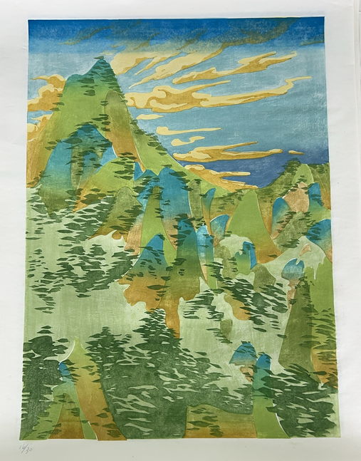 《青山》 水印木刻