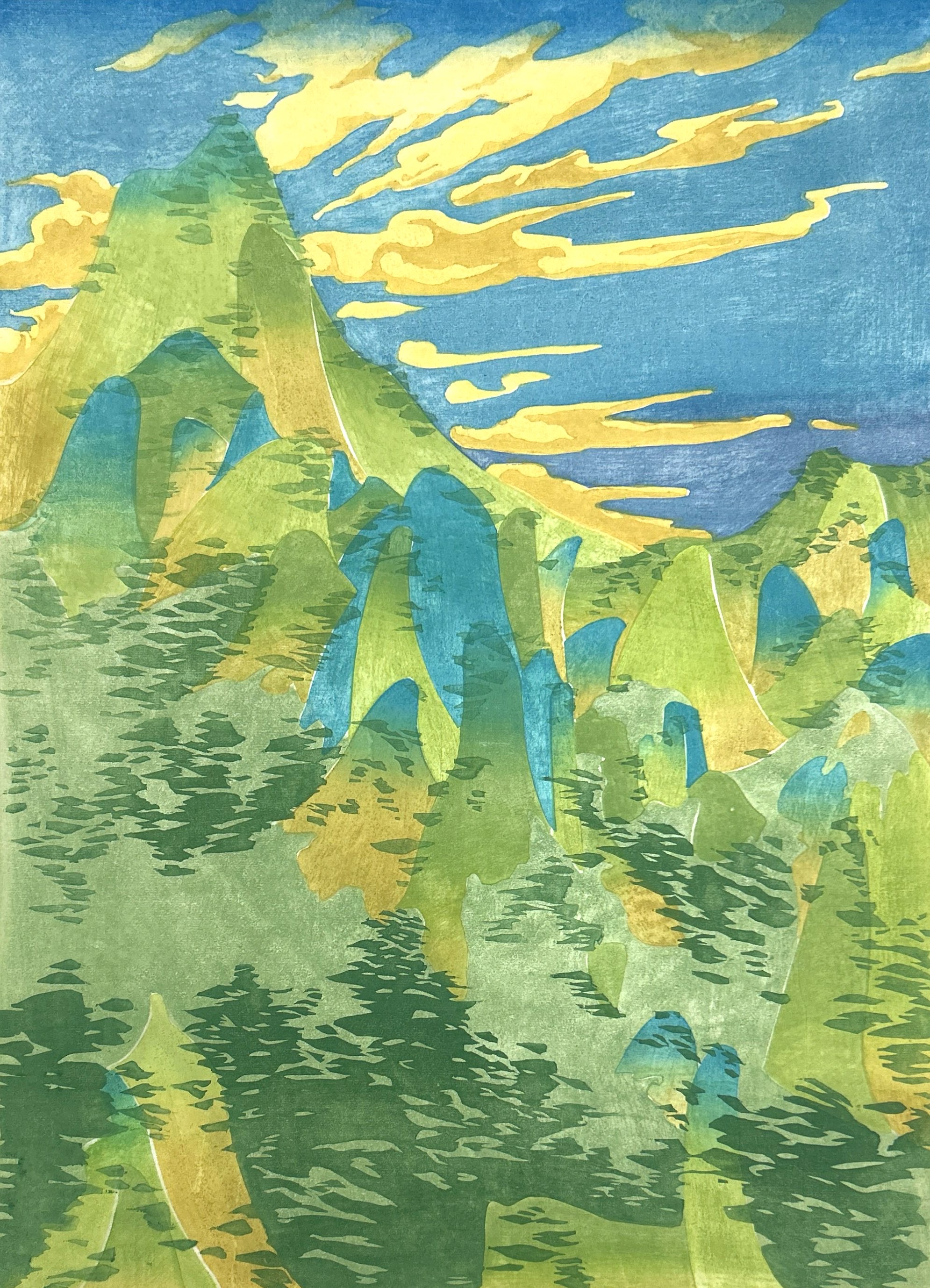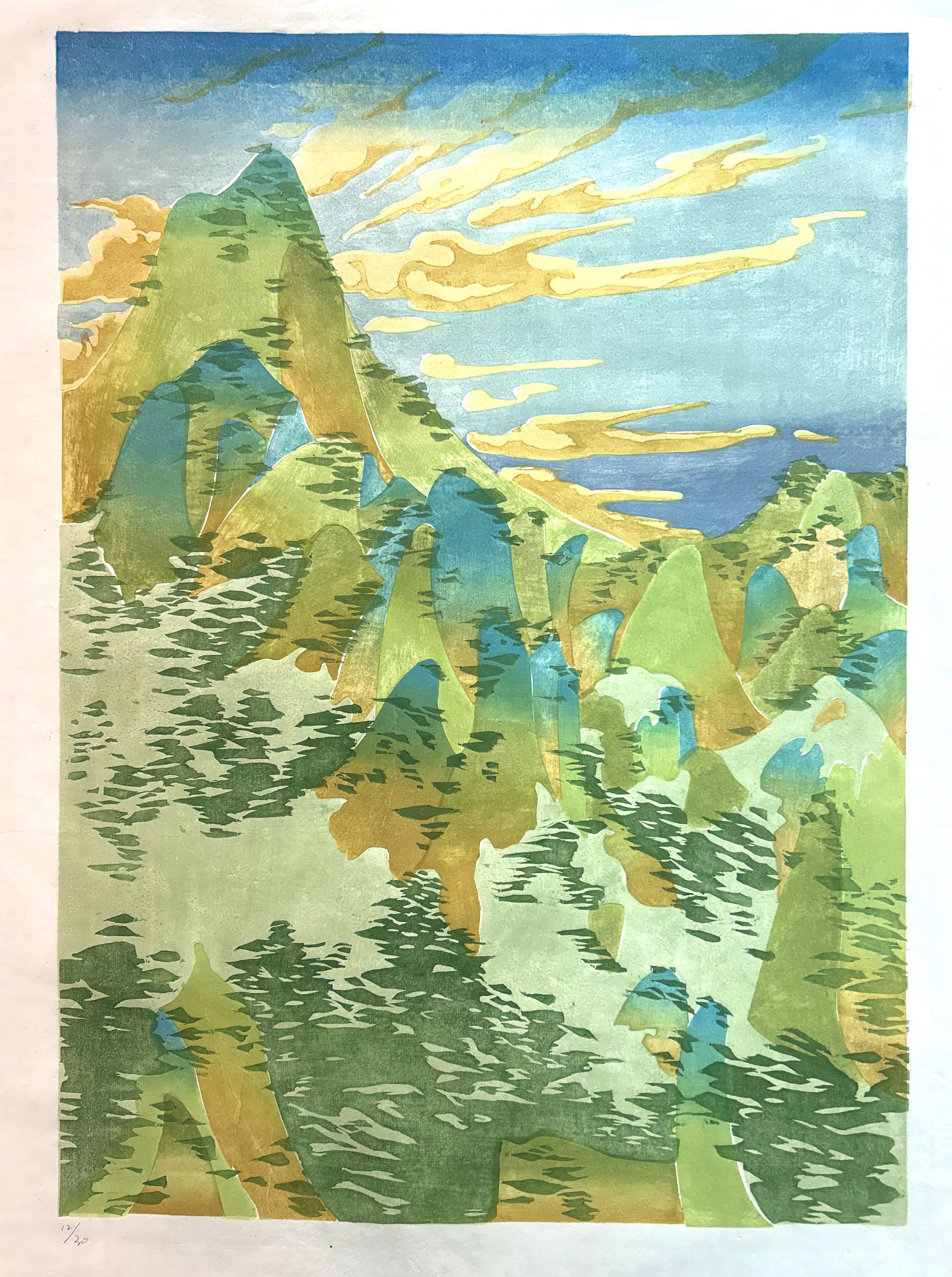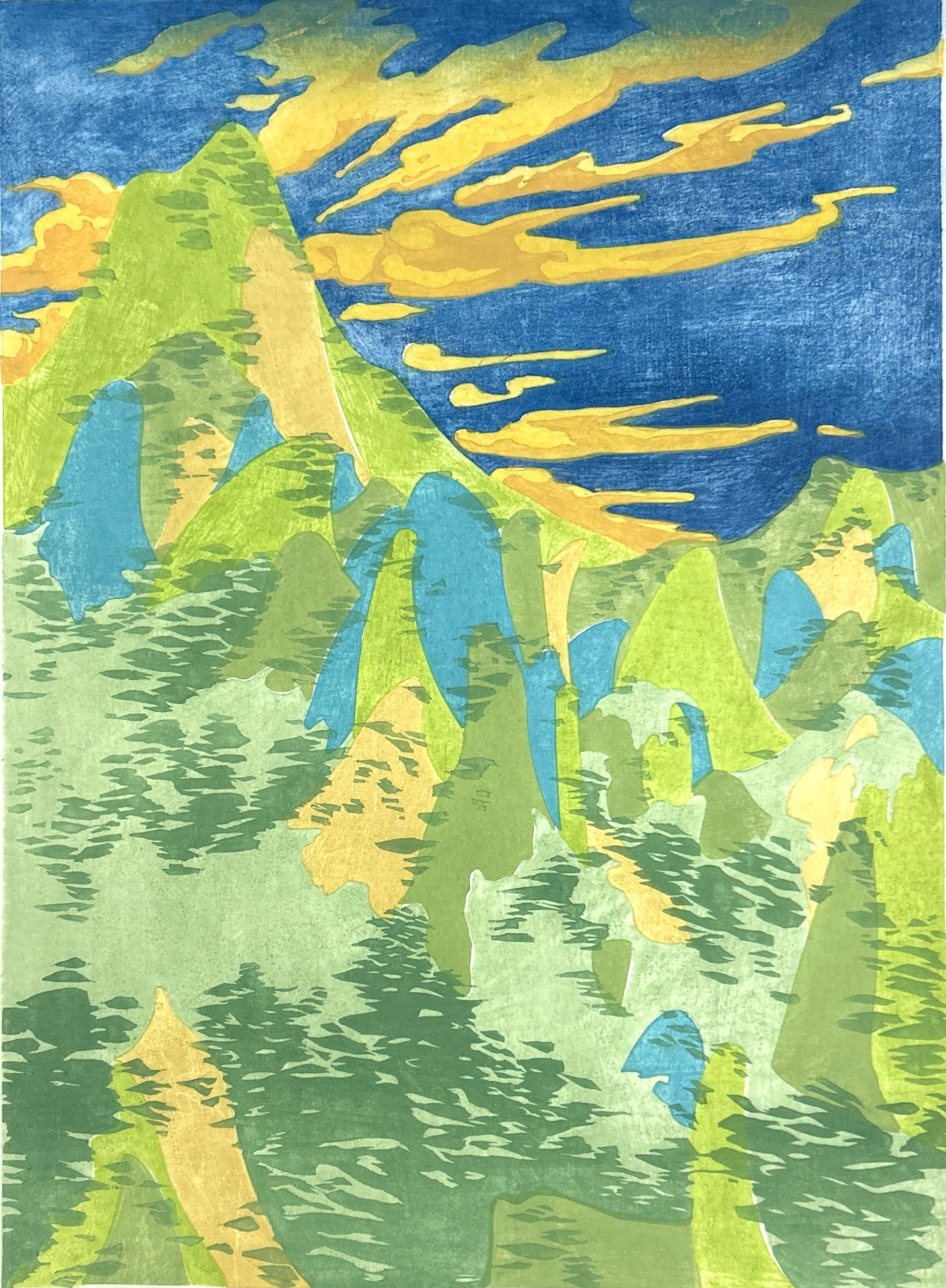 《青山》 水印木刻