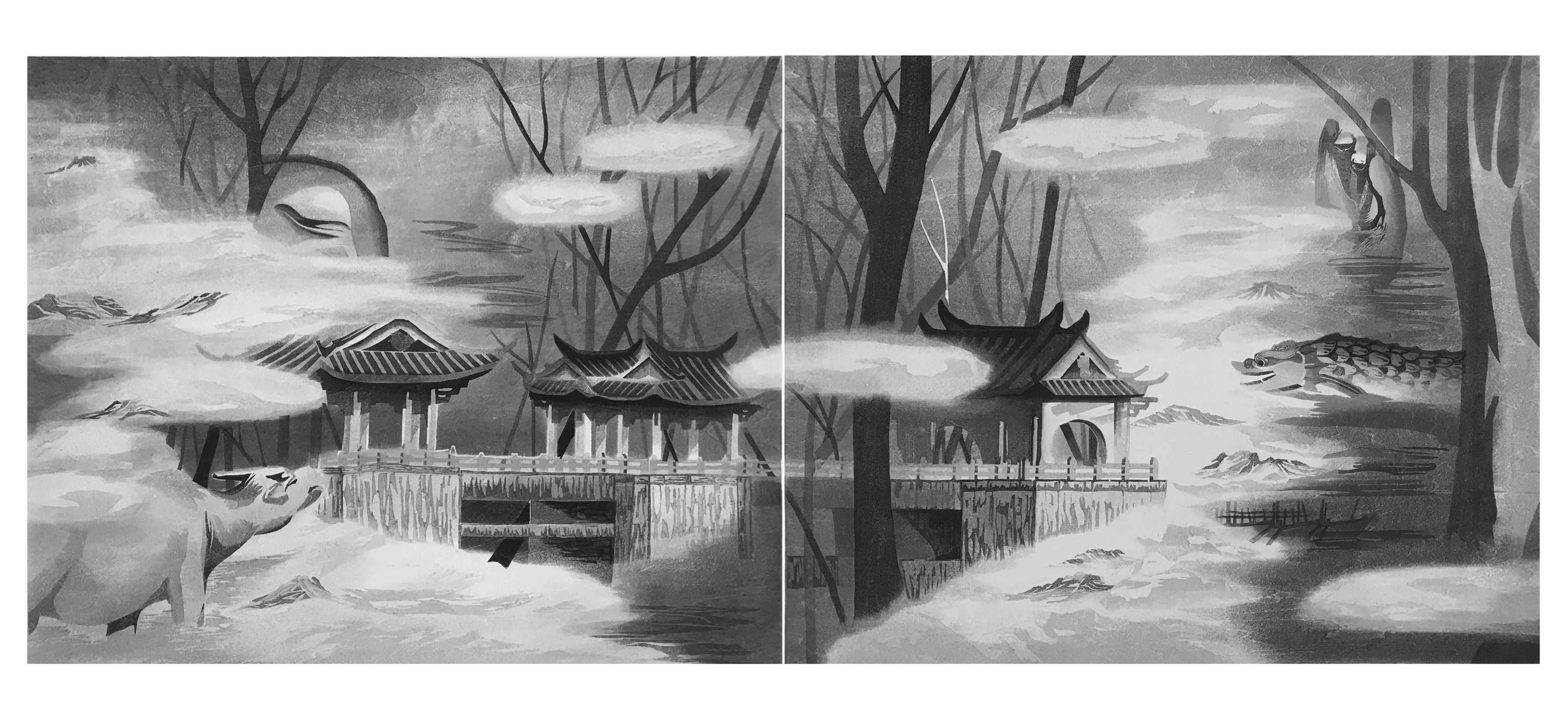 2019年版画作品《本原系列之湘桥春涨》、《本原系列之北阁佛灯》入选2019“视界”插图艺术展