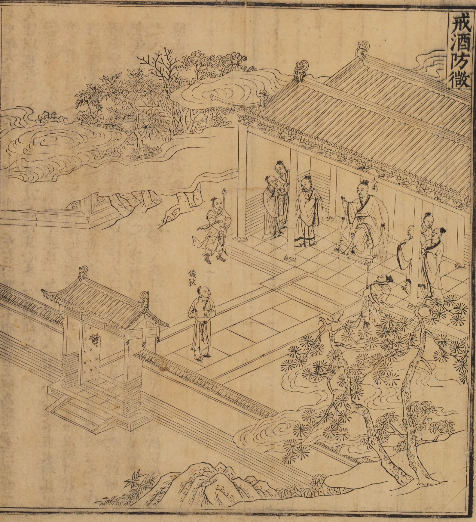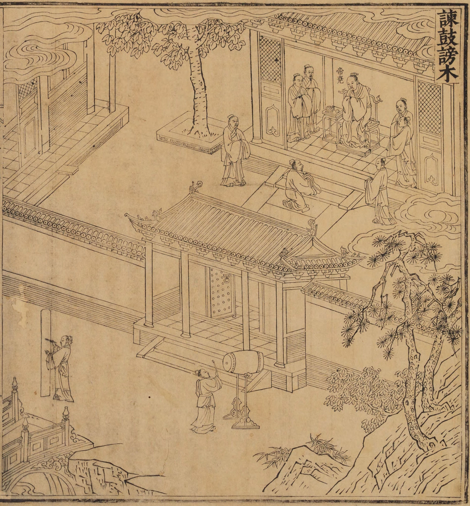 本期精选《帝鉴图说》上篇《圣哲芳规》部分的版画,以图像再现古代帝王的嘉言懿行。这些画面不仅展现了明代版画艺术的风格特色,也体现了传统政治文化中以“鉴”为核心的教化理念。版画线条细腻,构图严谨,形象生动地再现了历史典故,使读者得以透过画面感受千年前的兴衰之鉴。