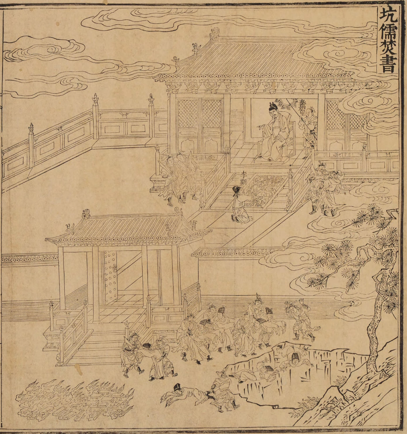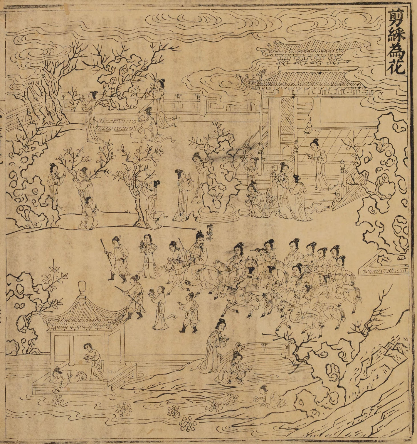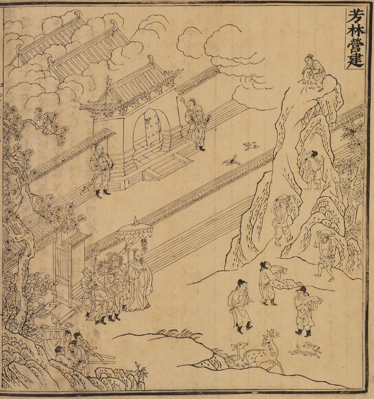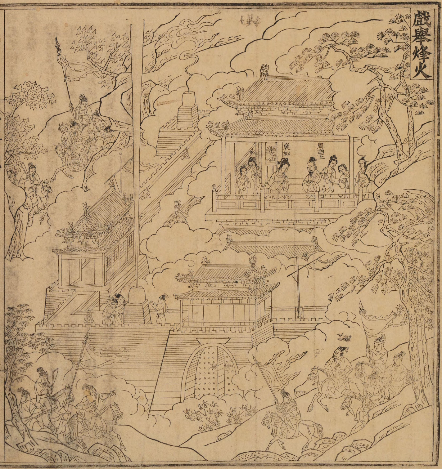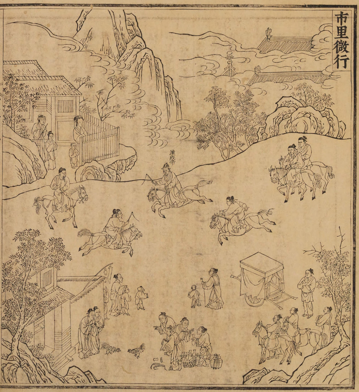 本期精选《帝鉴图说》下篇《狂愚覆辙》部分的版画,如果说上篇是颂扬贤明之君、树立治国理政的榜样,那么下篇则是毫不讳言地揭示了历代昏君的荒淫失政与自毁之道,以“反面教材”之姿,警醒后来者。这些画面不仅延续了明代版画艺术一贯的细腻工笔与严谨构图,也更加强调情绪的张力与场景的戏剧性,充分展现了“以戒为鉴”的传统政治文化教化理念。画中人物多呈现出极端的行为状态与荒唐决策,辅以生动的画面语言,将历史典故的荒谬与后果具象化,使读者得以透过画面直观感受历史的沉重警示。